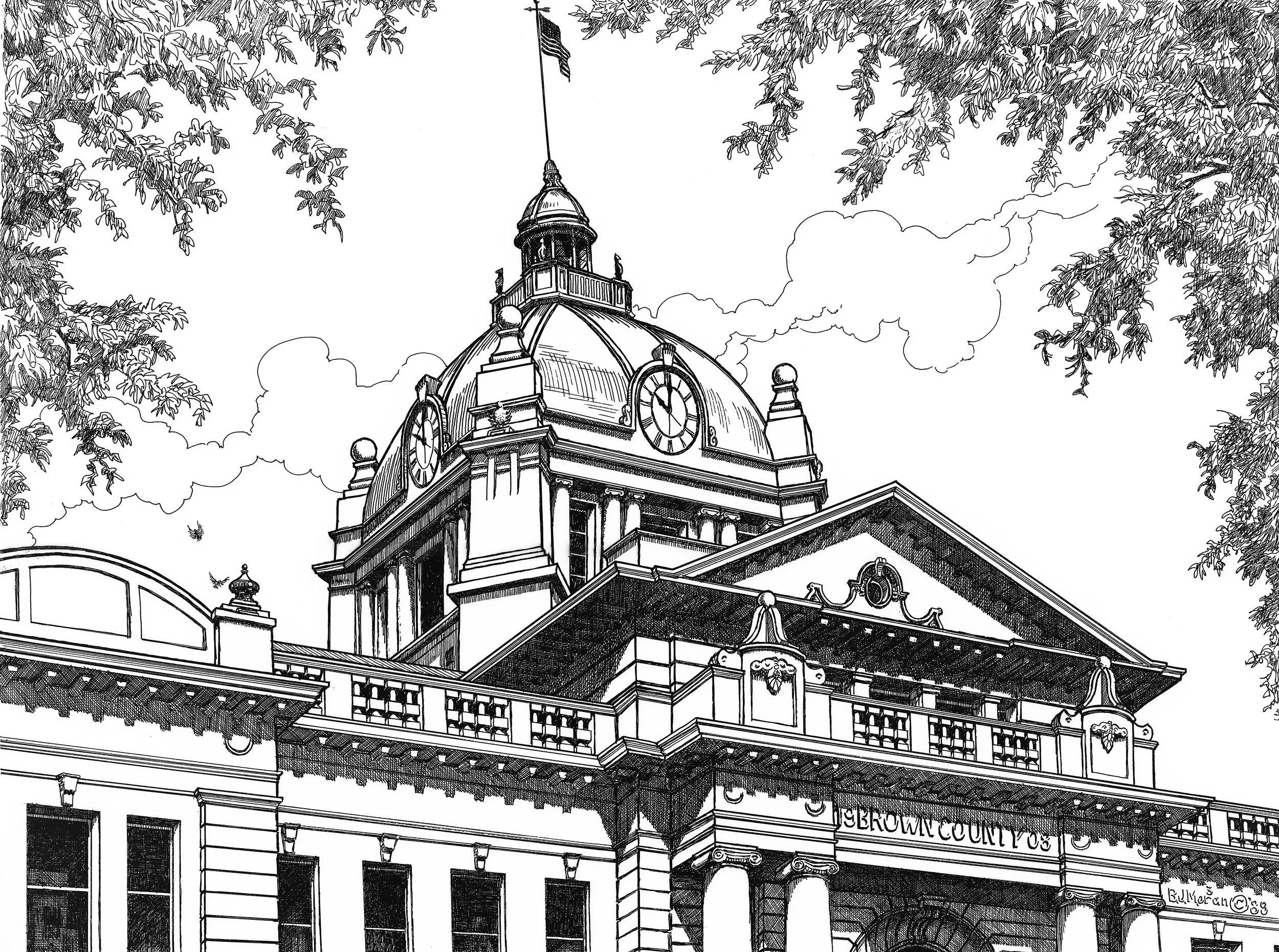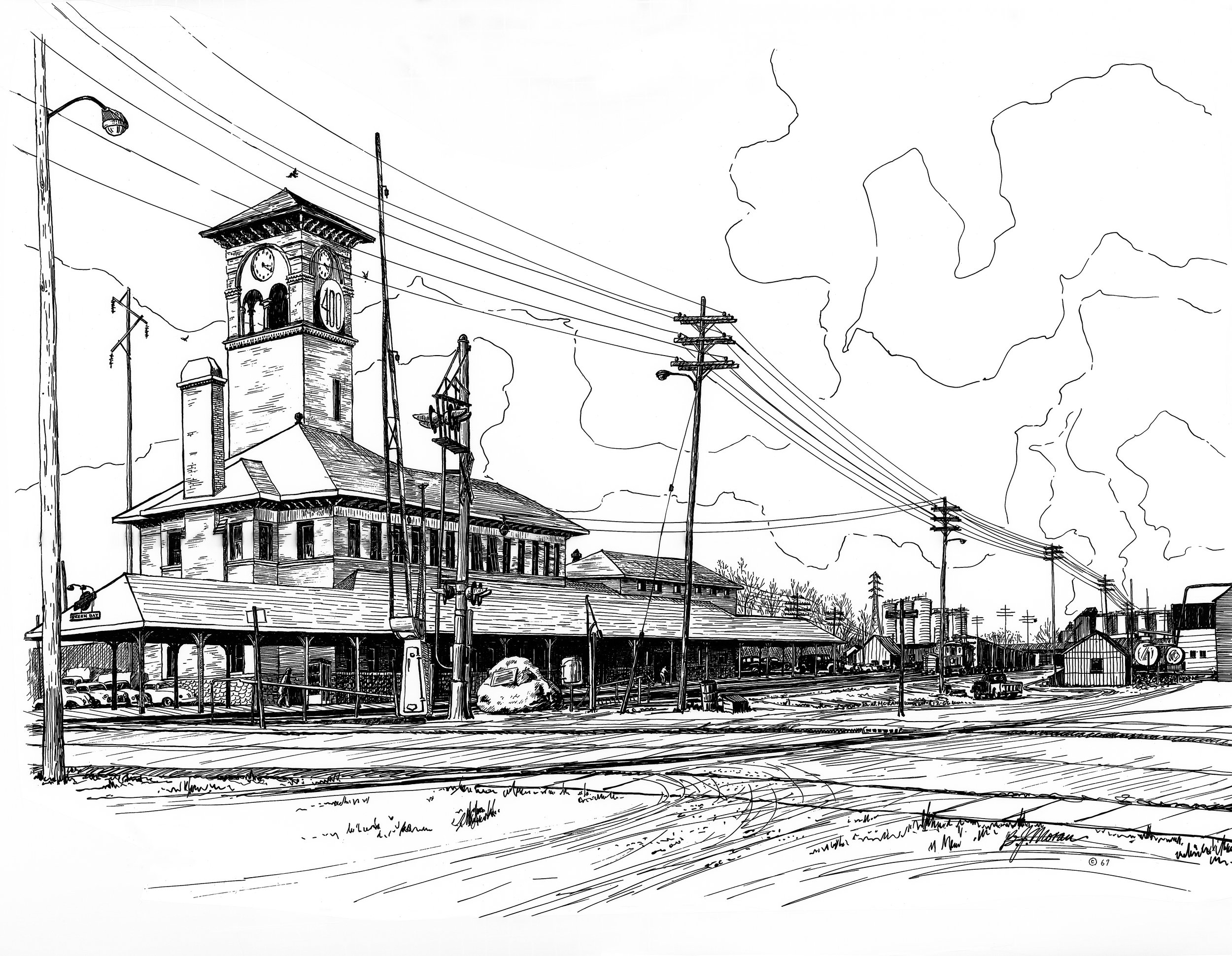 Welcome to the home of Bernie Moran’s Landmark Drawings. Beginning in 1966 Bernie Moran chronicled the architecture and memorable sites of Green Bay, DePere and Allouez Wisconsin. His work is collected by museums throughout the state and in 2009 he was awarded a Lifetime Achievement Award by the Brown County Historical Society.